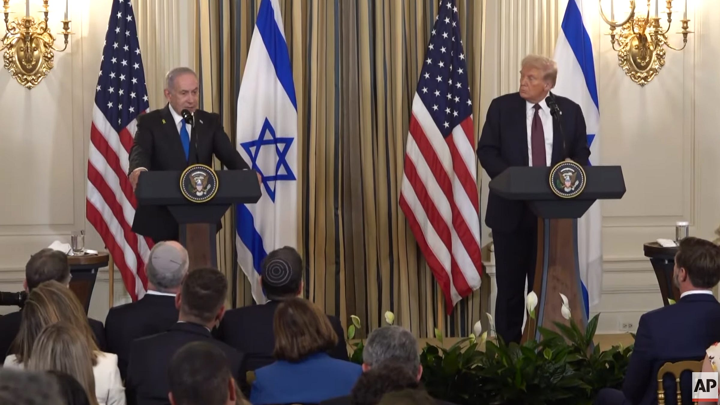 Screengrab as Israeli Prime Minister Benjamin Netanyahu and U.S. President Donald Trump hold a joint press conference at the White House on Sept. 29, 2025.